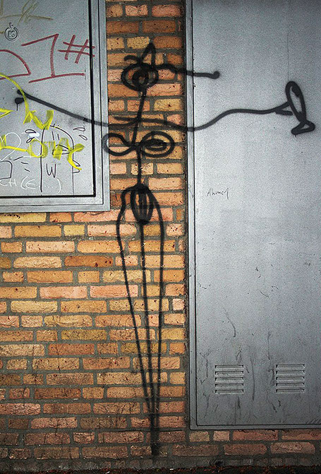 Harald Naegeli (1939). Rheinkniebrücke, Wand, Düsseldorf, 2017. Foto Jula 2812, WikiCommons.