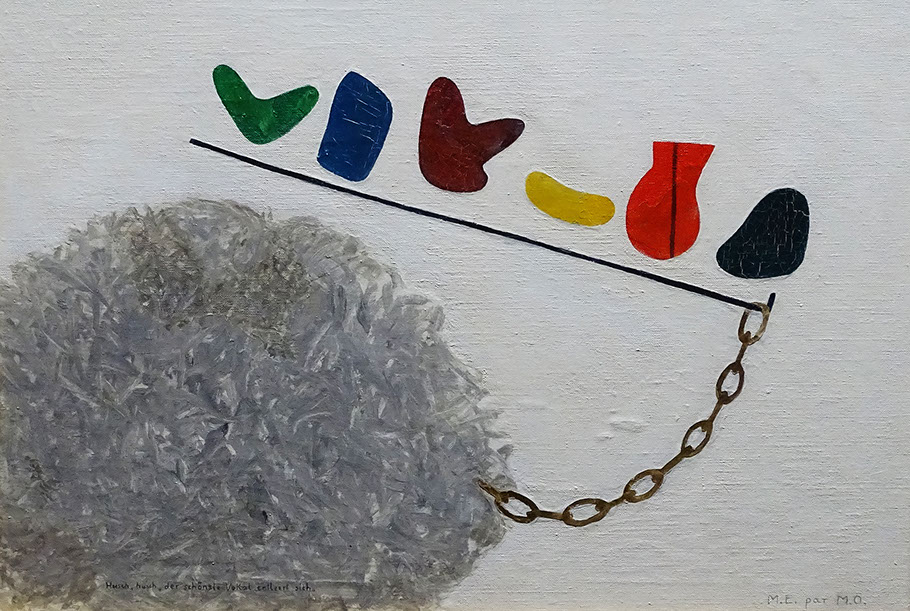 1973-Meret Oppenheim (1913-1985). La condition humaine (Da stehen wir), 1973. Privatsammlung.