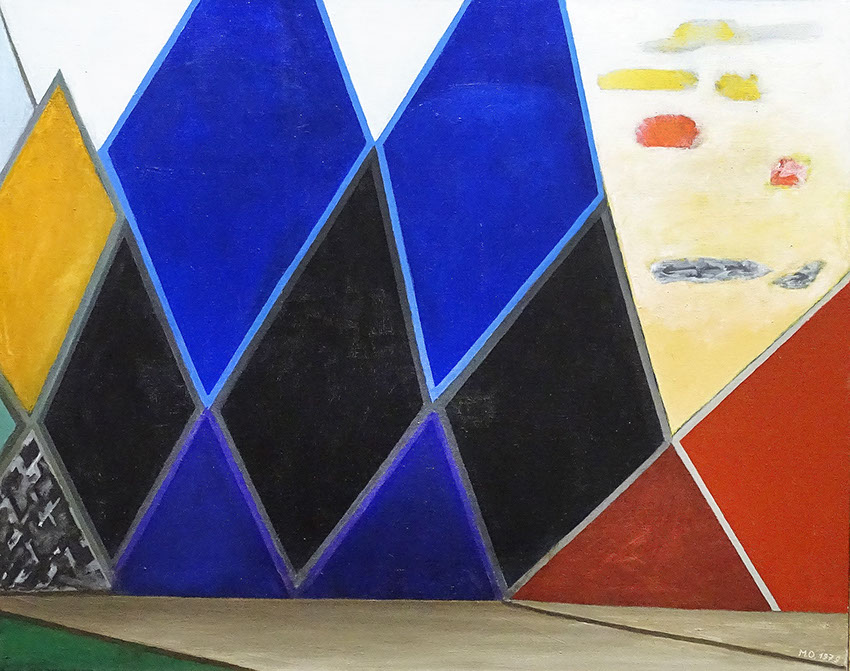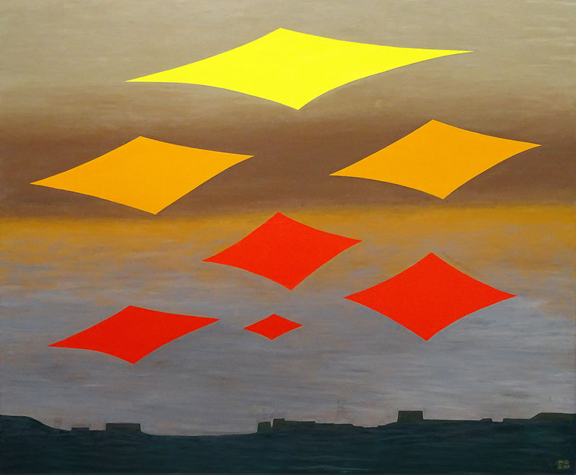 1977-Meret Oppenheim (1913-1985). Dunkle Berge, rechts gelb-rote Wolken, 1977-79. Aargauer Kunsthaus Aarau.