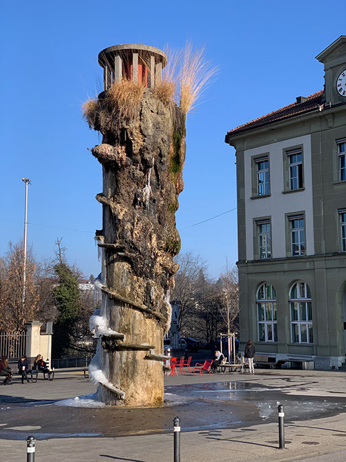 1983-Meret Oppenheim (1913-1985). Der Oppenheim-Brunnen am Waisenhausplatz in Bern, 1983. Winter-Detail.