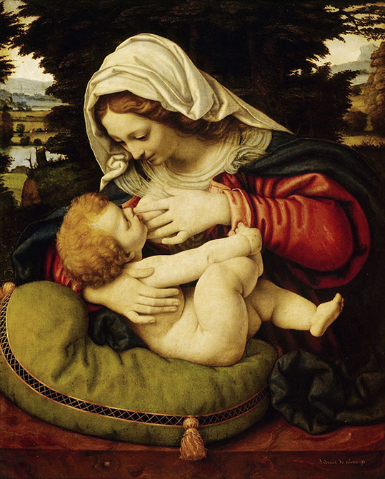 Andrea Solario (1465-1524). Madonna mit dem grünen Kissen. Musée du Louvre, Paris.