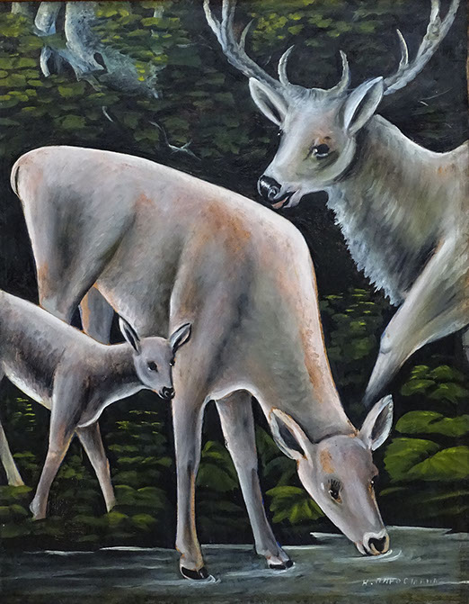 Niko Pirosmani (1862-1918). Drei Hirsche an der Quelle, Öl auf Karton. Georgisches Nationalmuseum, Tbilissi.