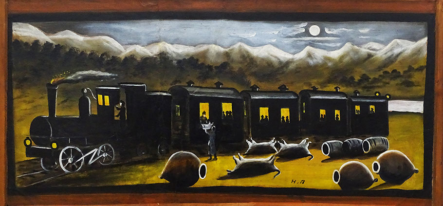 Niko Pirosmani (1862-1918). Eisenbahnzug in Kachetien, Öl auf Karton. Georgisches Nationalmuseum, Tbilissi.
