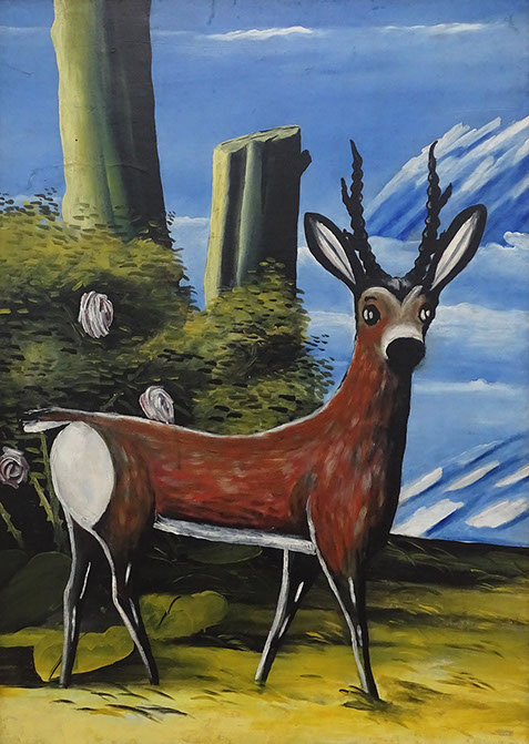 Niko Pirosmani (1862-1918). Reh vor einer Landschaft, 1913. Detail. Georgisches Nationalmuseum, Tbilissi.