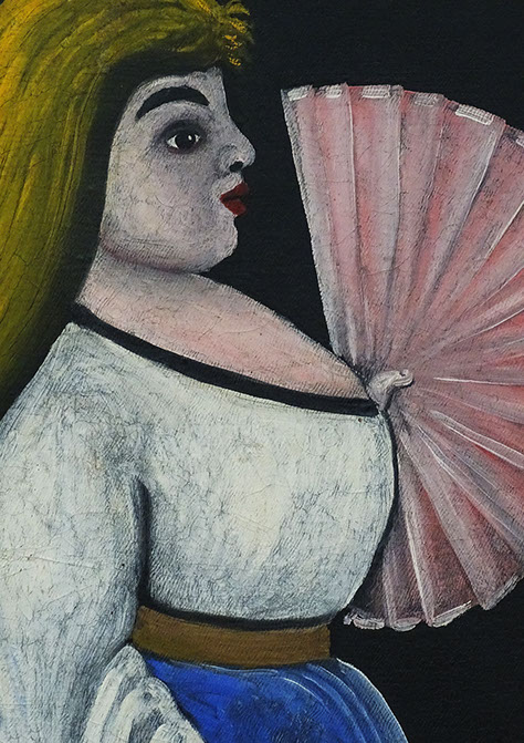 Niko Pirosmani (1862-1918). Schönheit aus Ortatschala mit Fächer, Öl auf Wachstuch. Detail.