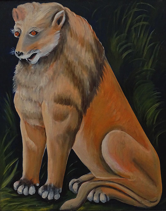 Niko Pirosmani (1862-1918). Sitzender gelber Löwe, Öl auf Karton. Detail. Georgisches Nationalmuseum, Tbilissi.