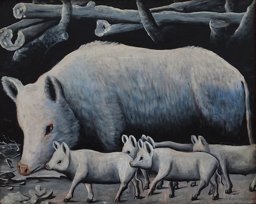 Niko Pirosmani (1862-1918). Weisses Schwein mit Ferkeln, o.D. Georgisches Nationalmuseum, Tbilissi.