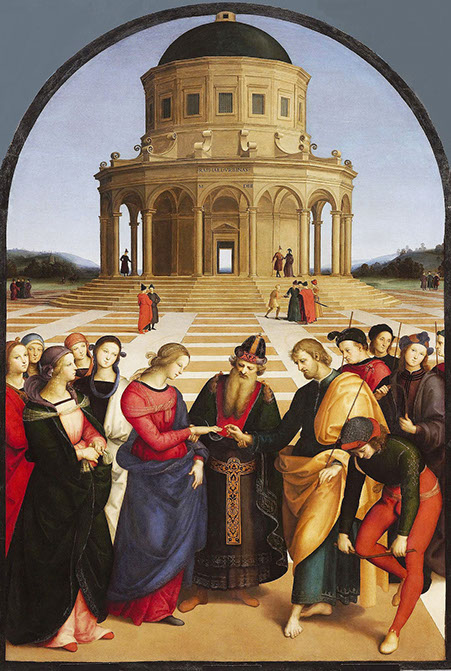 Raffael (1483-1520). Die Vermählung Mariä (Lo Sposalizio), 1504. Pinacoteca di Brera, Milano.