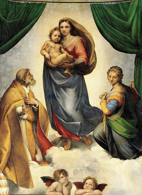 Raffael (1483-1520). Sixtinische Madonna, 1513-14. Gemäldegalerie Alte Meister, Dresden.