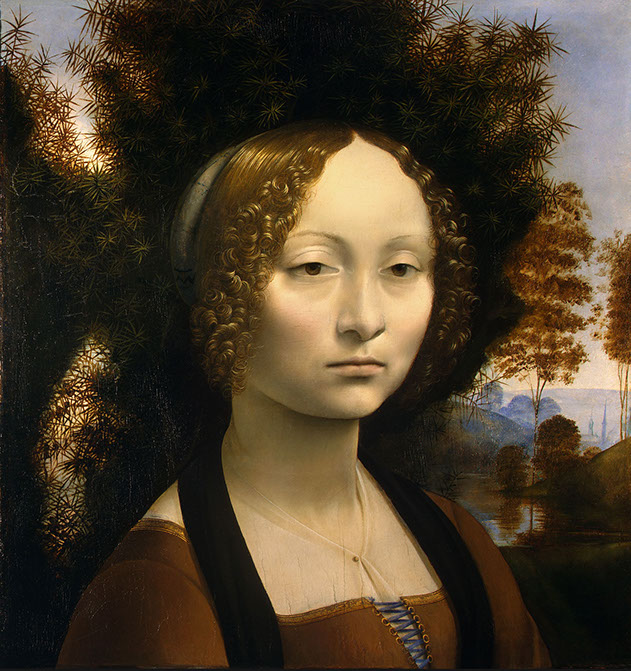 1474-Leonardo da Vinci (1452-1519). Portrait of Ginevra de Benci, 1474-78. National Gallery of Art, Washington.