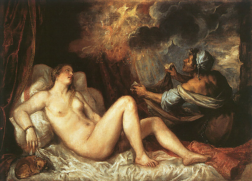 1553-Tizian (1490-1576). Danaë und der Goldregen, 1560-65. Museo del Prado, Madrid.