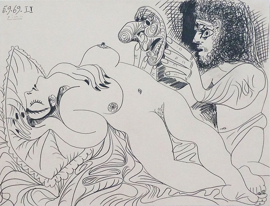 1969-Pablo Picasso (1881-1973). Nu couché et homme au masque, 1969. Sammlung Beyeler.