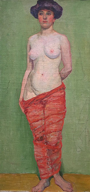 Sigismund Righini (1870-1937). Akt mit rotem Tuch.
