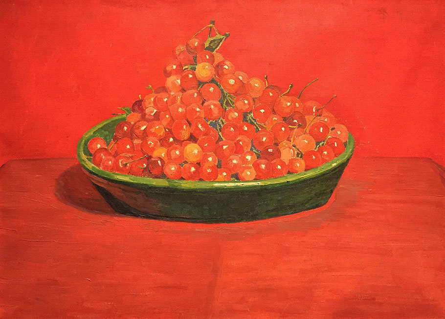 Sigismund Righini (1870-1937). Rote Kirschen auf rotem Grund, 1909.