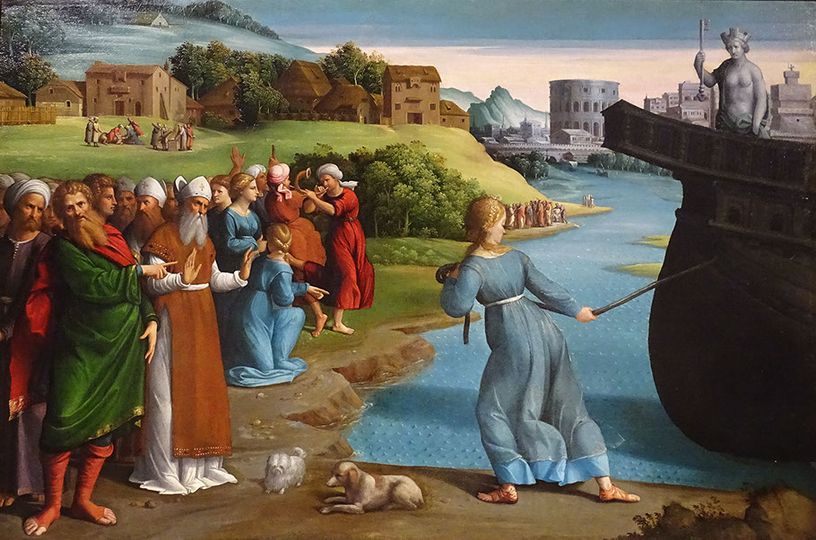 Garofalo (1481-1559). La vestale Claudia Quinta traina la nave, 1443. Galleria Barberini, Rom.