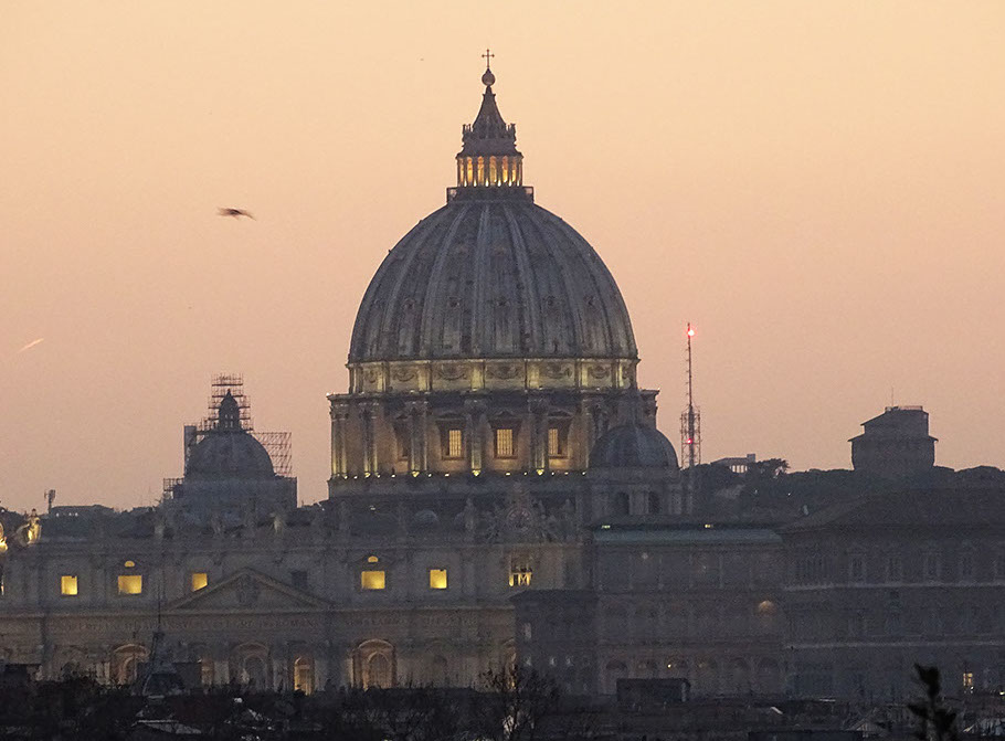 Petersdom bei Sonnenuntergang, vom Hügel Pincio aus gesehen.