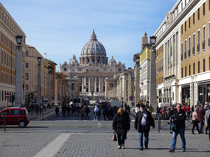 Blick von der Engelsburg auf den Dom, mit Via della Conciliazione.