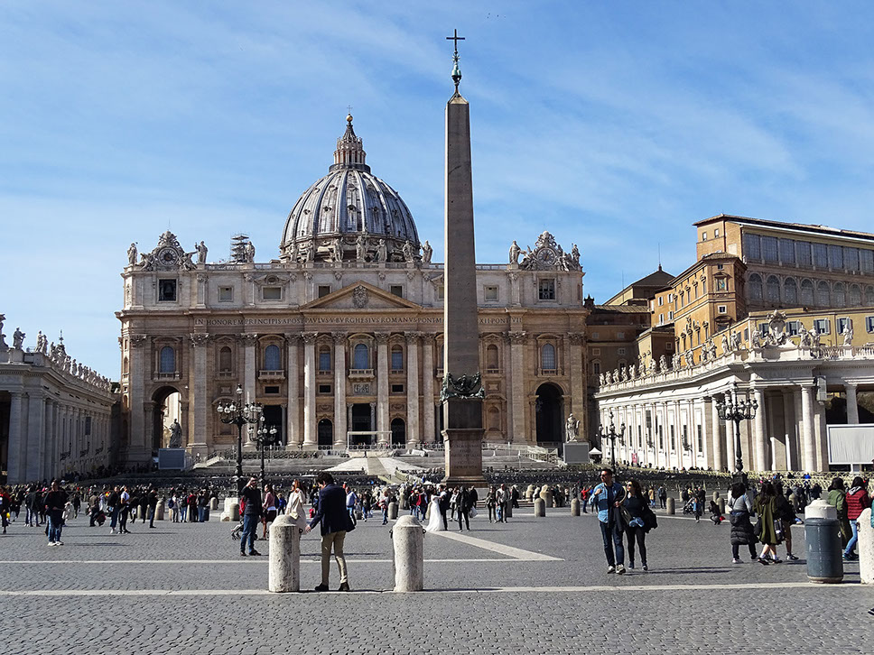 Obelisk auf der Piazza San Pietro und Via della Conciliazione, die zur Engelsburg führt.