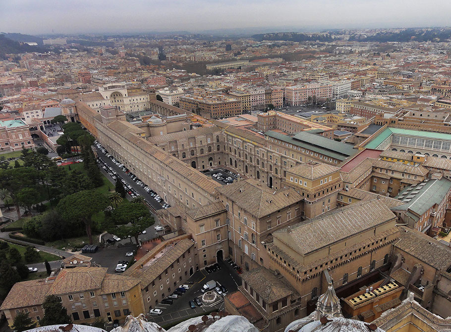 Petersdom, Piazza San Pietro, Gärten und Museen des Vatikans. Foto©GoogleEarth.