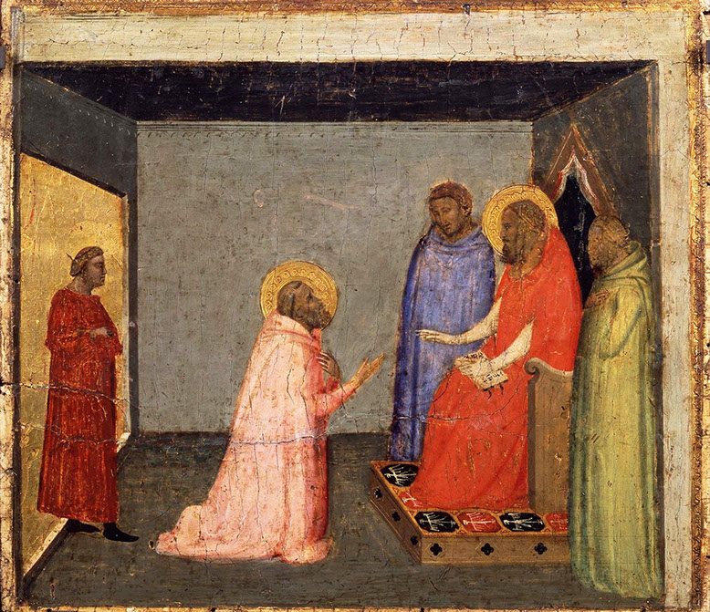 Bernardo Daddi (1280-1348). Der heilige Lukian erzählt Johannes seine Erscheinung. Pinacoteca Vaticana.