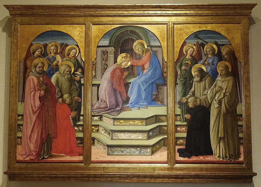 Filippo Lippi (1406-1469). L'incoronazione della Vergine con Angeli, Santi e donatori, 1444. Pinacoteca Vaticana.