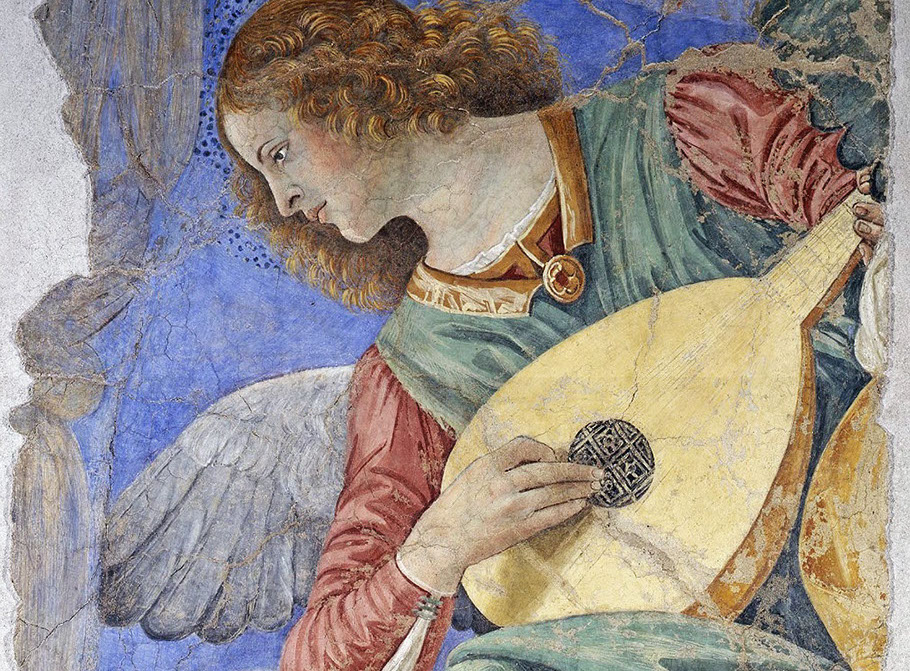 Melozzo di Forlì (1438-1494). Angeli musicanti, cherubini e teste di apostoli, 1480. Pinacoteca Vaticana.
