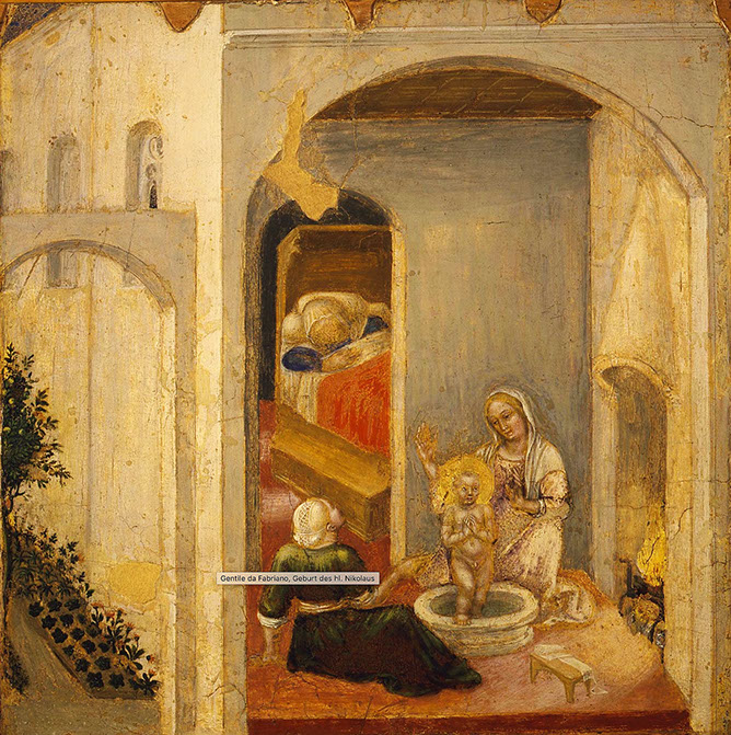 Gentile da Fabriano (1370-1427). Geburt des hl. Nikolaus. Pinacoteca Vaticana.
