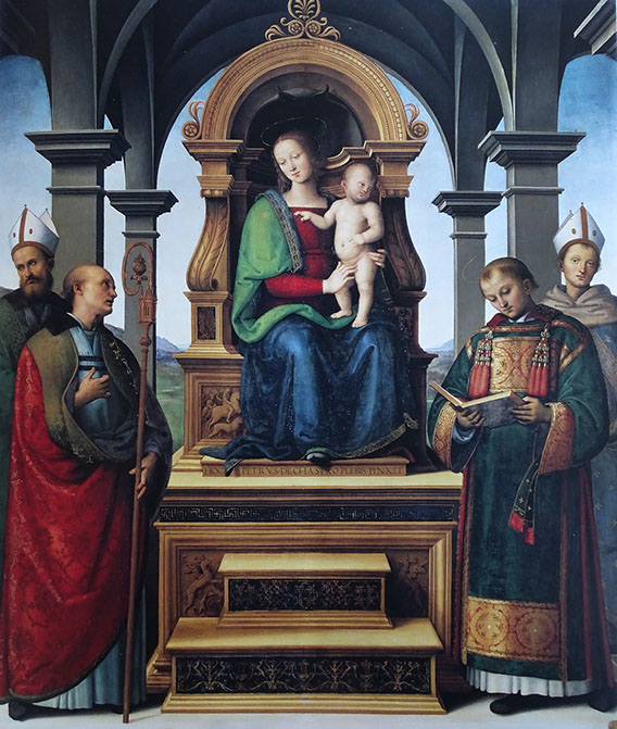 Perugino (1450-1524). Madonna mit Kind und Heiligen, 1495-96. Pinacoteca Vaticana.