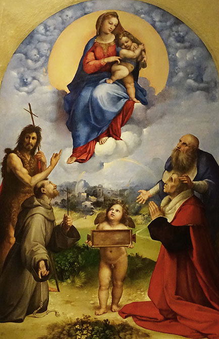 Raffael (1483-1520). Madonna di Foligno, 1511-13. Detail. Pinacoteca Vaticana.