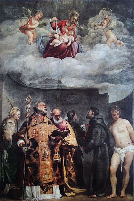 Tizian (1490-1576). Madonna mit Kind und Heiligen, 1533-35. Pinacoteca Vaticana.