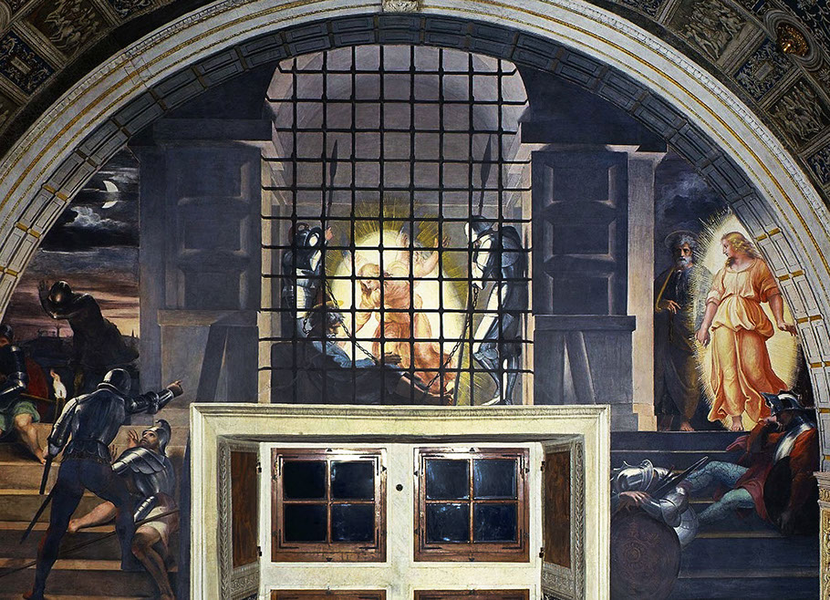 Raffael (1483-1520) und Schüler. Befreiung des heiligen Petrus. Stanza di Eliodoro.