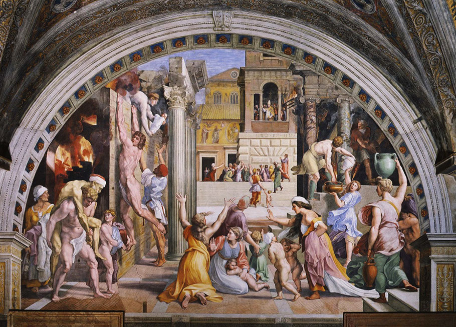 Raffael (1483-1520) und Schüler. Brand des Borgo. Stanza dell'incendio di Borgo.