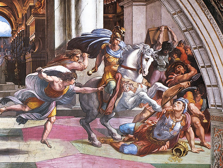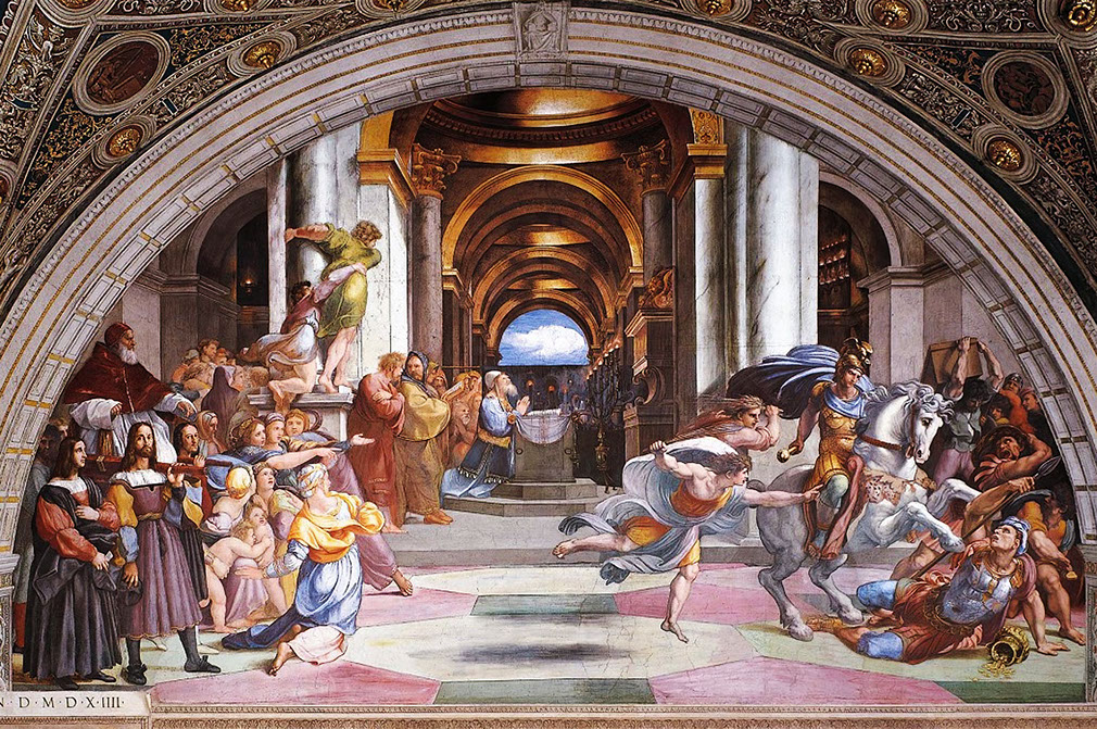 Raffael (1483-1520) und Schüler. Verjagung des Heliodor aus dem Tempel Jerusalems. Stanza di Eliodoro.