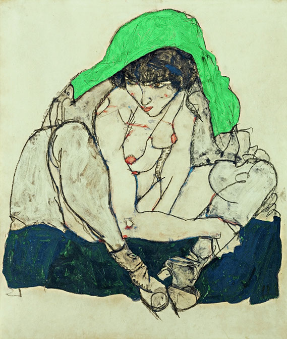 Kauernde mit grünem Kopftuch, 1914. Leopold Museum, Foto Manfred Thumberger.