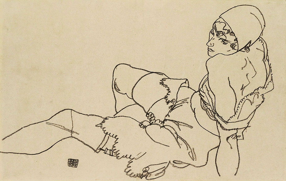 Sich aufstützende Frau in Unterwäsche, 1917. Leopold Museum, Foto Manfred Thumberger.