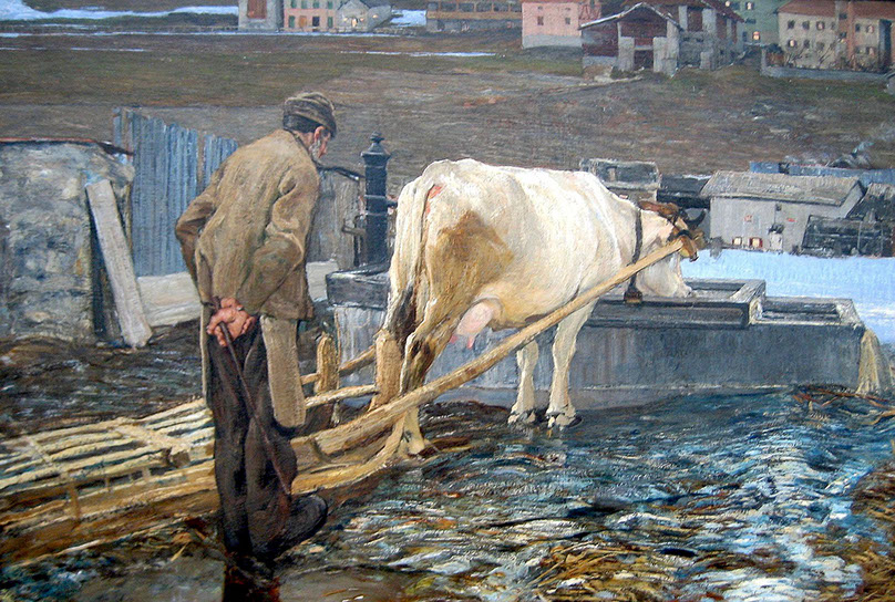 Giovanni Segantini (1858-1899). Kühe an der Tränke, 1888. Kunstsammlung Basel. Wiki Commons.