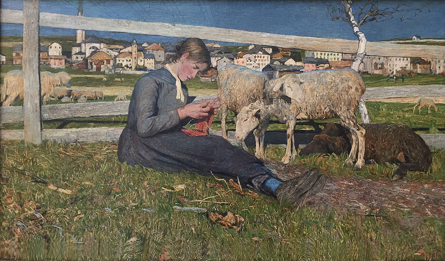 Giovanni Segantini (1858-1899). Strickendes Mädchen, Savognin, 1888. Kunsthaus Zürich.