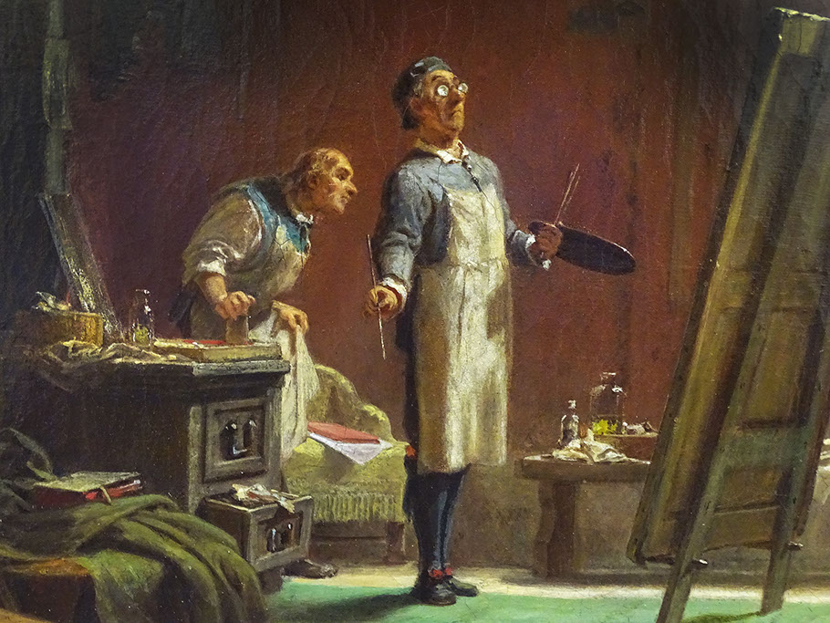 1855-Carl Spitzweg (1808-1885). Der Porträtmaler, 1855. Detail. Museum Georg Schäfer, Schweinfurt.