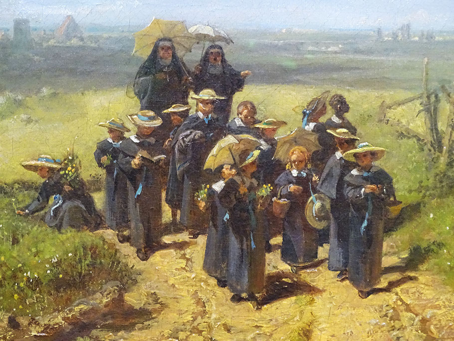1860-Carl Spitzweg (1808-1885). Der Institutsspaziergang, 1860. Detail. Neue Pinakothek München.