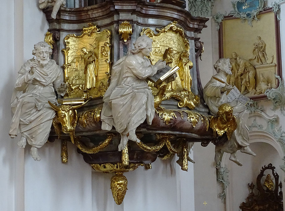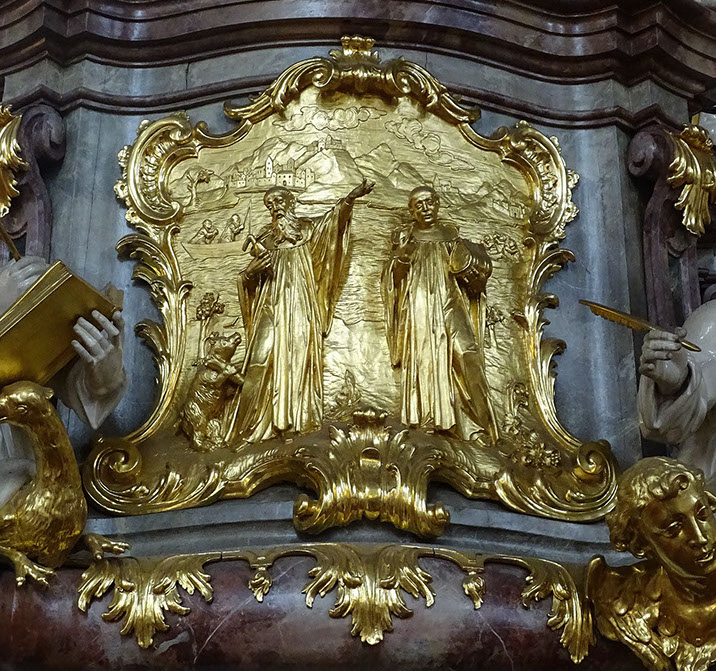 Kanzel_Detail: Heilige Gallus und Otmar.