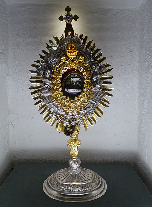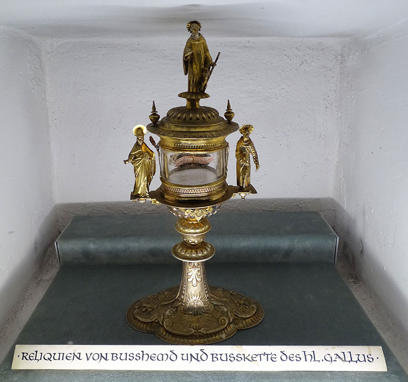 Krypta: Reliquien von Busshemd und Busskette des Heiligen Gallus.