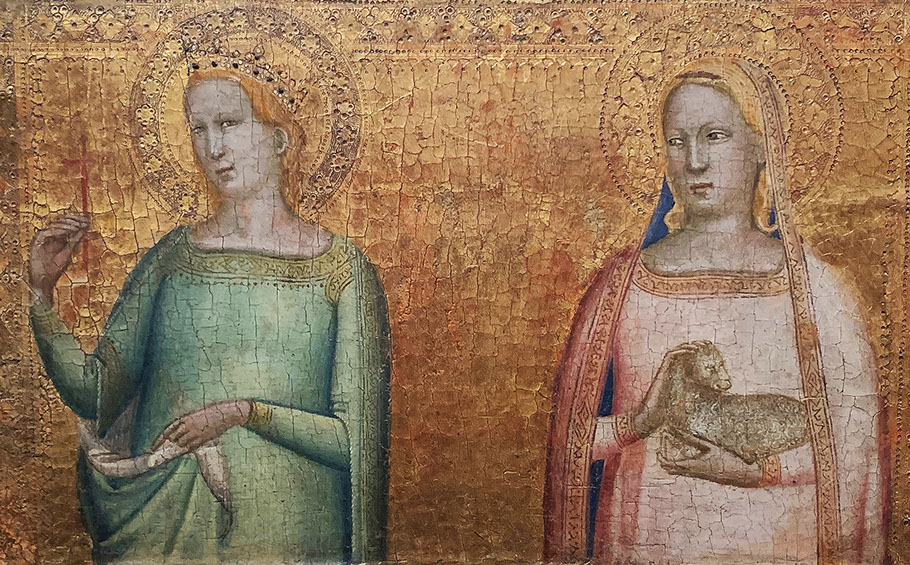 Bernardo Daddi (actif 1312-1348). Sainte Marguerite et sainte Agnès. Detail. Musée des Beaux-Arts Strasbourg.