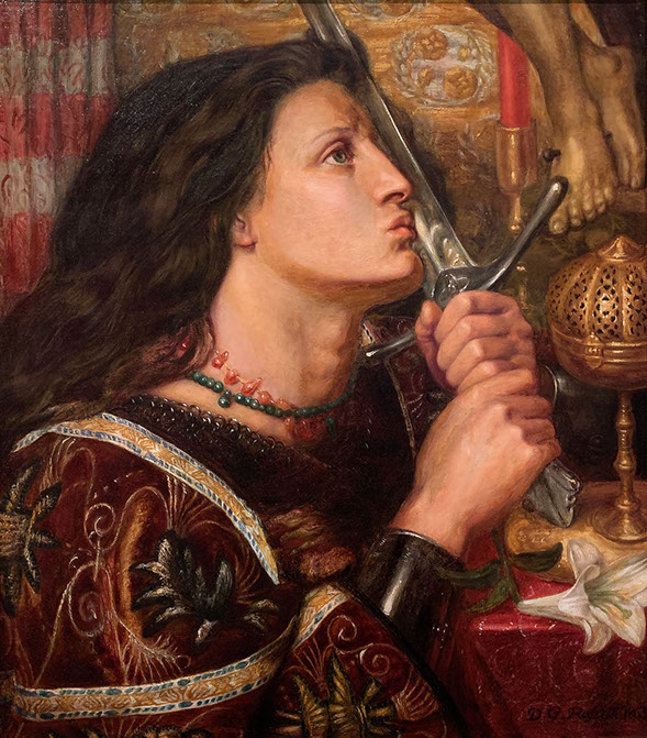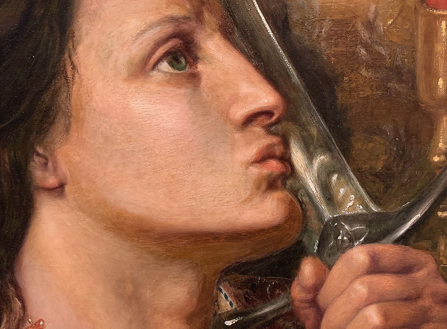 Dante Gabriel Rossetti (1828-1882). Jeanne d'Arc embrassant l'épée de la Délivrance, 1863. Detail.