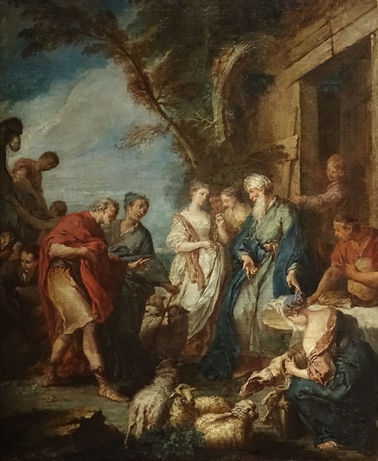 François Boucher (1703-1770). Béthuel acceullant le serviteur d'Abraham, 1725. Musée des Beaux-Arts Strasbourg.