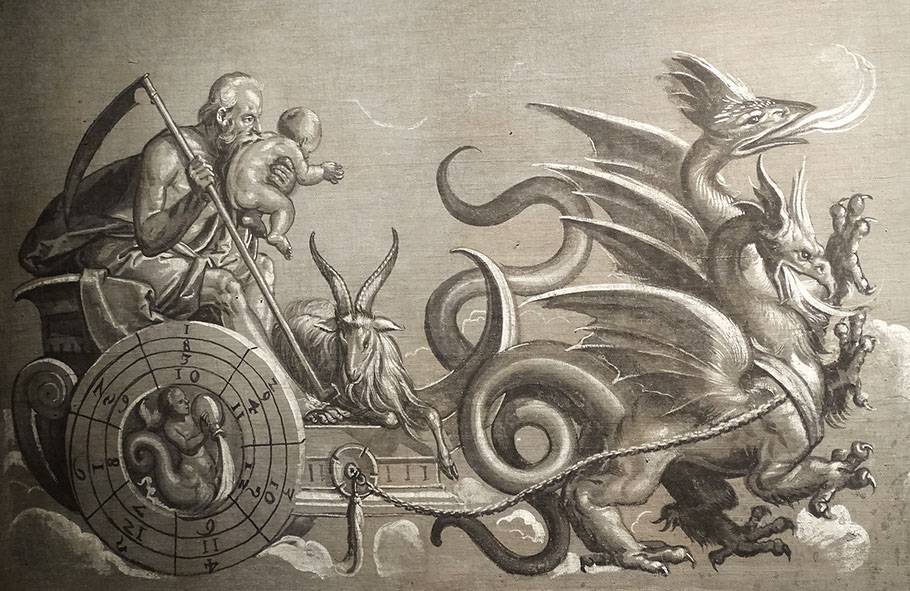 Tobias Stimmer (1539 Schaffhausen 1584). Les Chars des sept jours, Saturne, Jupiter, Mars, 1571. Detail.