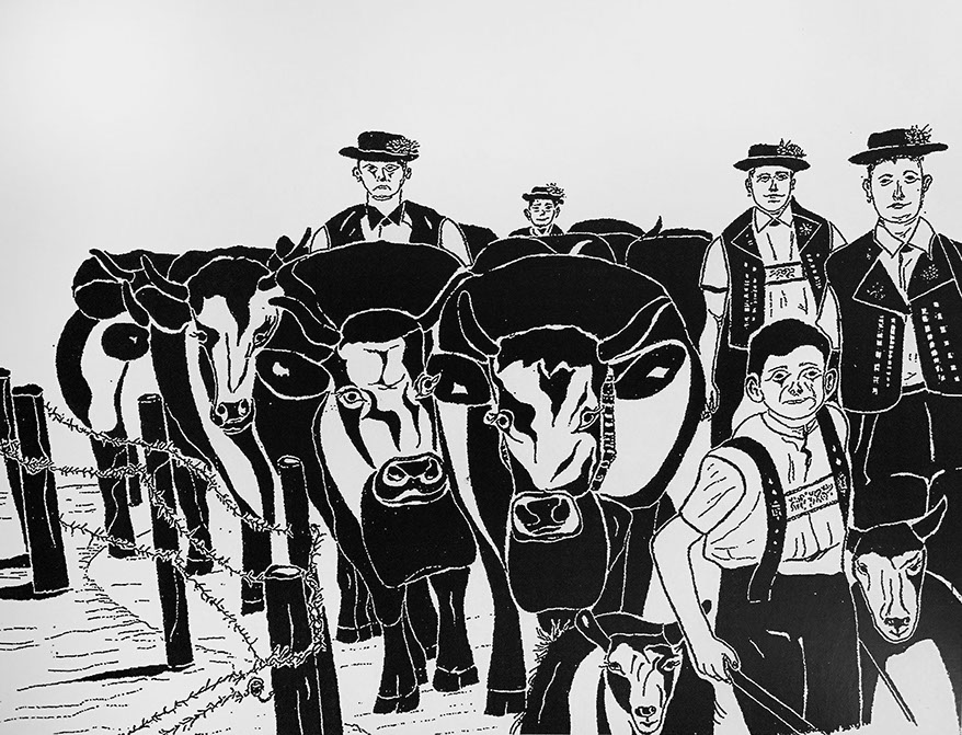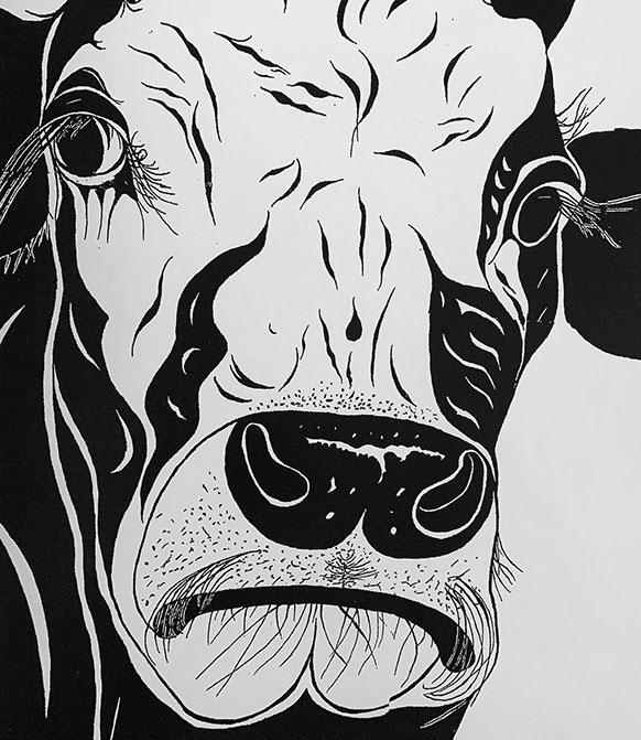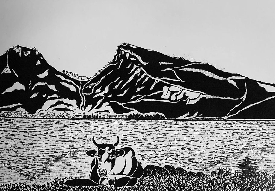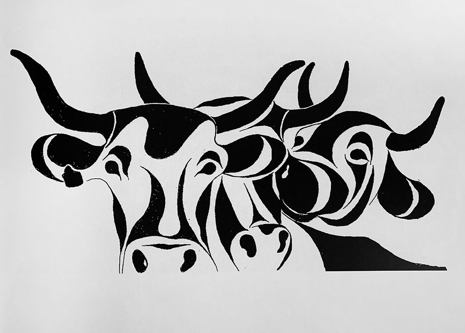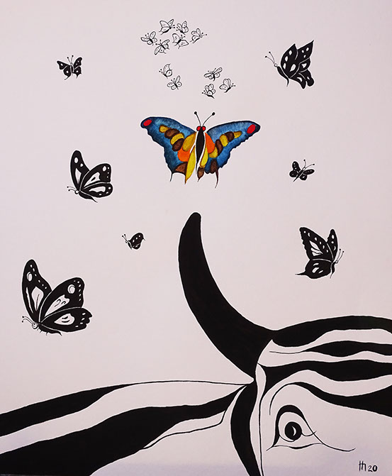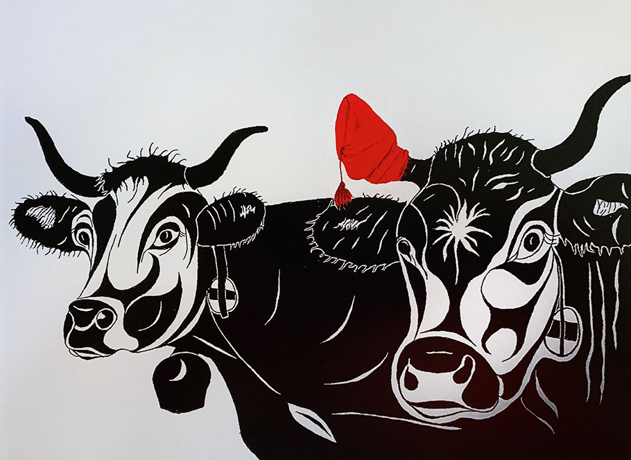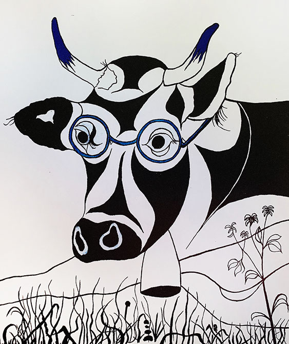 Ruedi Theiler (1944). Kuh und Schmetterlinge, 2020.