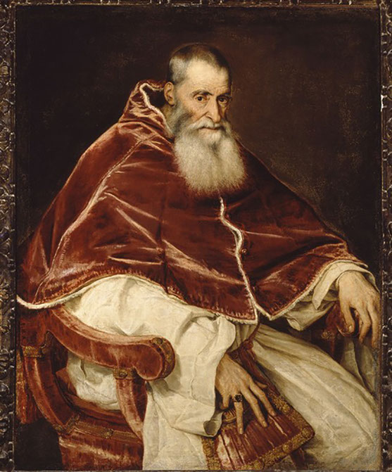 1543-Tizian (1490-1576). Papst Paul III, 1543. Galleria degli Uffizi, Firenze.