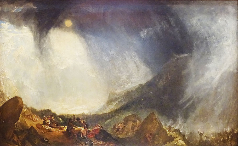 1812- Snow Storm, Hannibal and his Army Crossing the Alps, 1812. (Elefant im Hintergrund!). Tate Britain London.