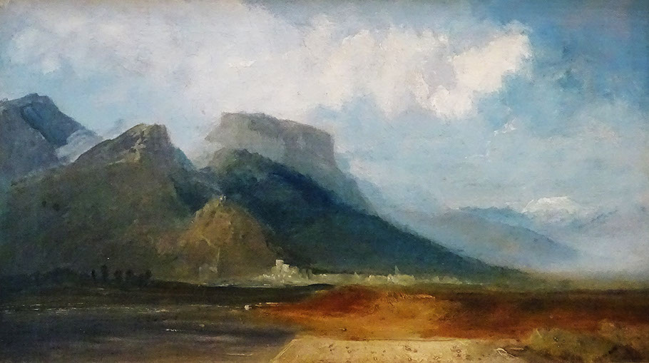William Turner (1775-1851). Grenoble seen from the River Drac with Mont Blanc in the Distance, 1802. Tate London.