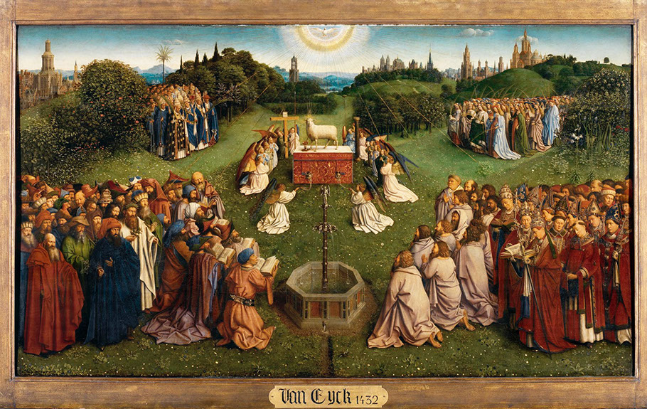 Detail des Genter Altars, Hauptbild. Fotoquelle: closertovaneyck.kikirpa.be
